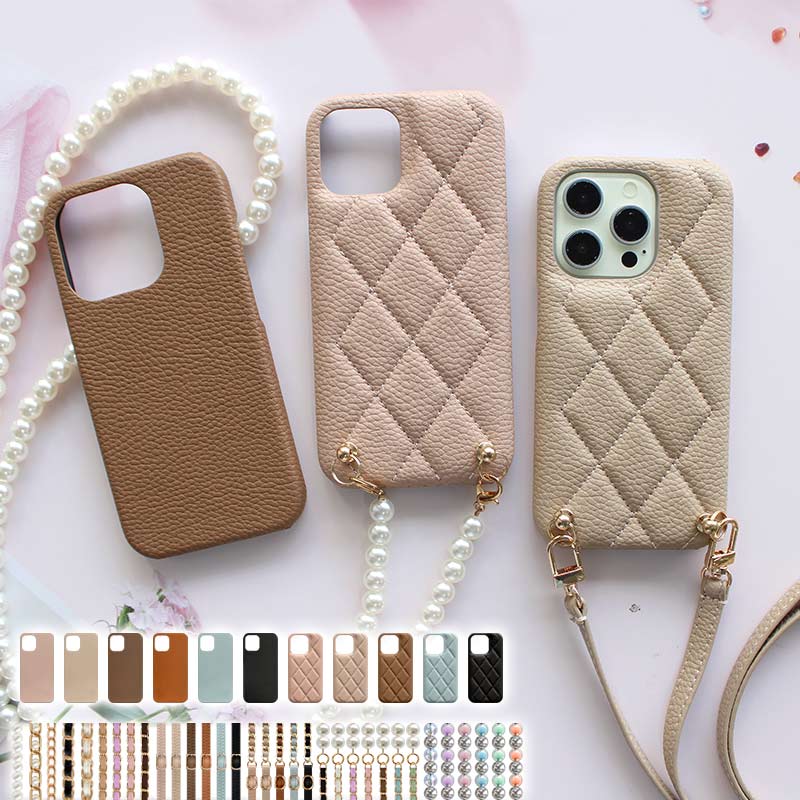 スマホケース スマホカバー iPhoneケース( レザーハードorキルティングケース×ロングストラップ )スマホショルダー メール便送料無料 受注生産