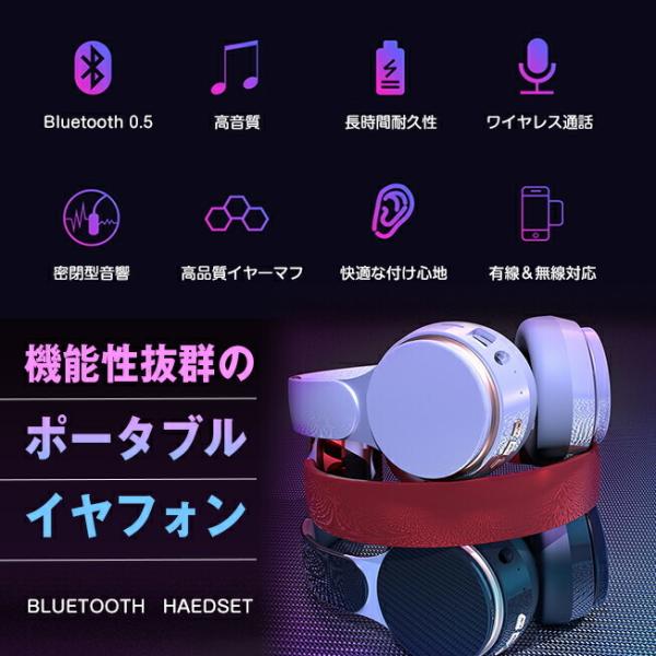 ヘッドホン 密閉型 Bluetooth マイク ワイヤレス ヘッドフォン 折りたたみ式 ケーブル着脱式 有線 無線 両用 高音質 音楽再生8時間 Bluetooth5.0