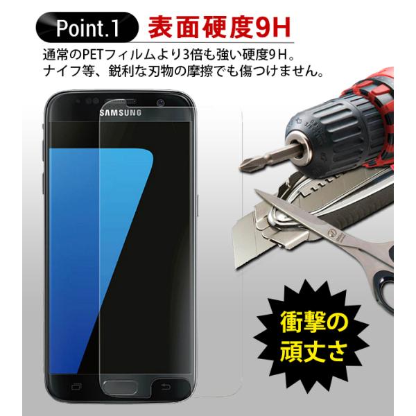仕様:鍵やナイフなど鋭利なもので切りつけてもキズが付かない、 表面硬度9Hの強化ガラスフィルム。
