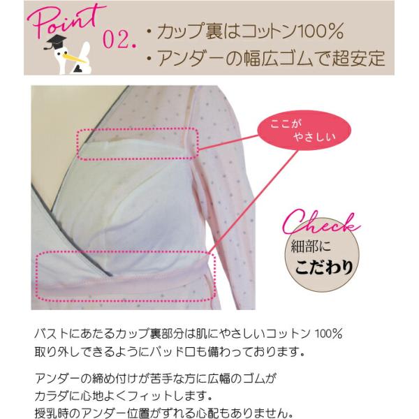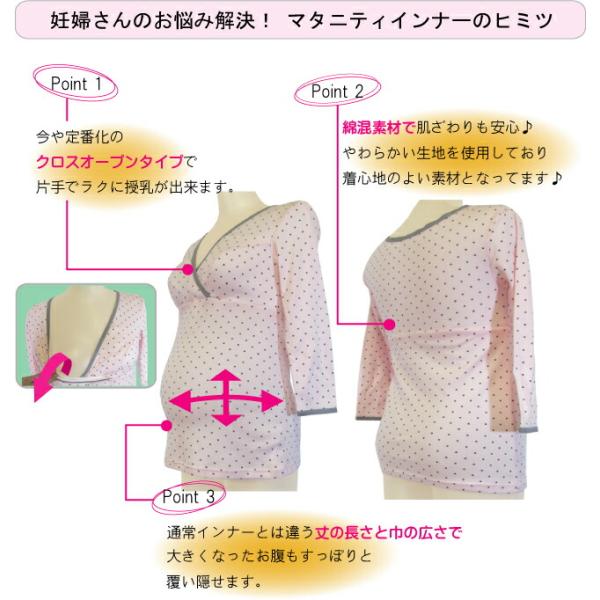 7分袖 授乳インナー ドット柄 授乳 インナー マタニティ マタニティー マタニティインナー マタニティーインナー 長袖 秋 冬 クロスオープン
