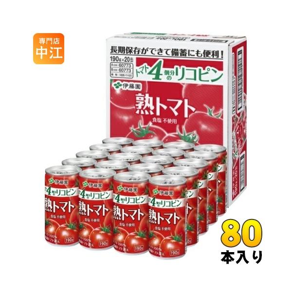 伊藤園 熟トマト 190g 缶 80本 (20本入×4 まとめ買い) 野菜ジュース トマトジュース
