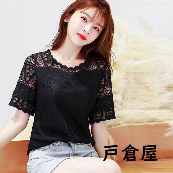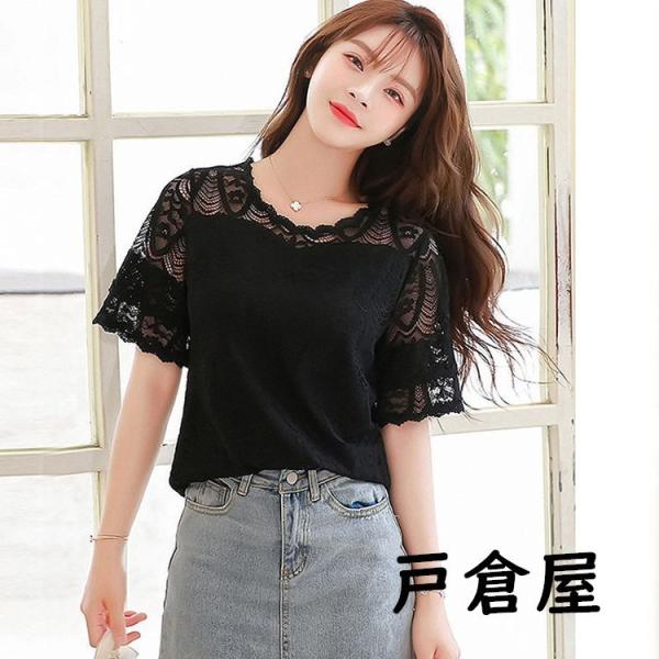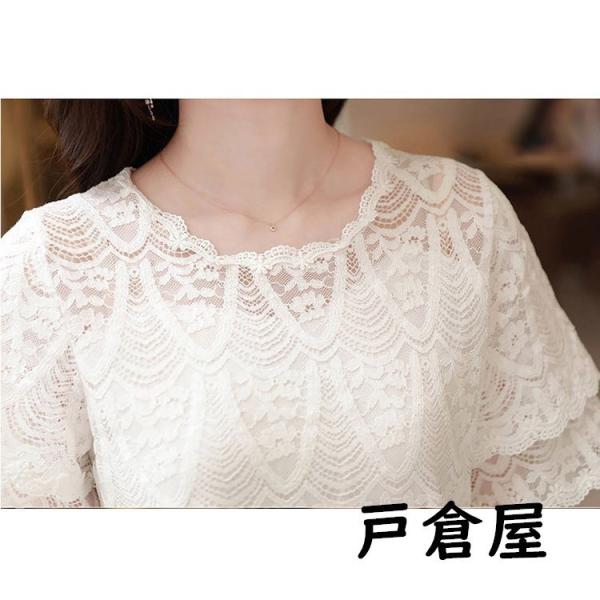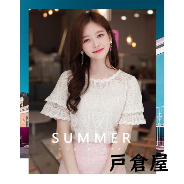 ブラウス レディース 40代 2021 オシャレブラウス 白レースシャツ 半袖トップス パフスリーブ ブラウス 大人 通勤OL ゆったり シャツ 韓国