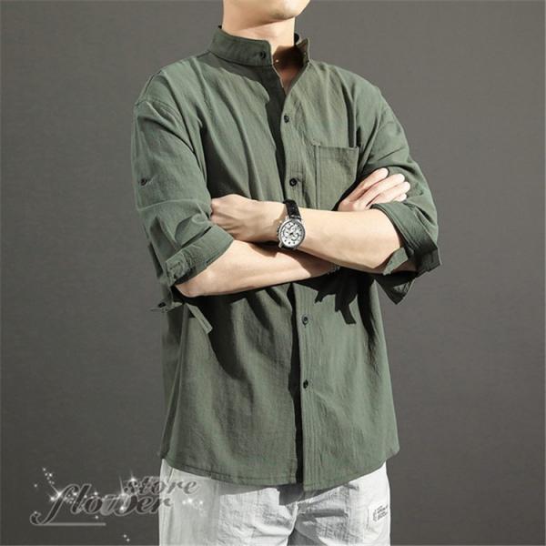 メンズシャツペアユニセックス羽織り長袖リネン襟付き麻リネン混無地『風合いリネン混シンプルシャツ』