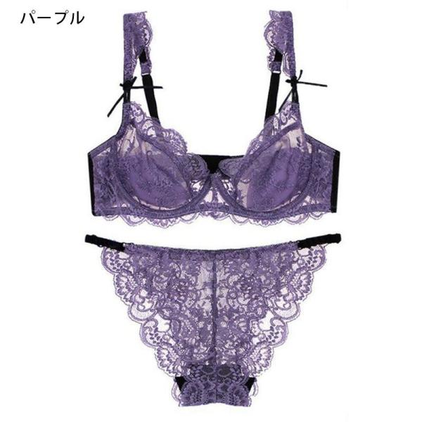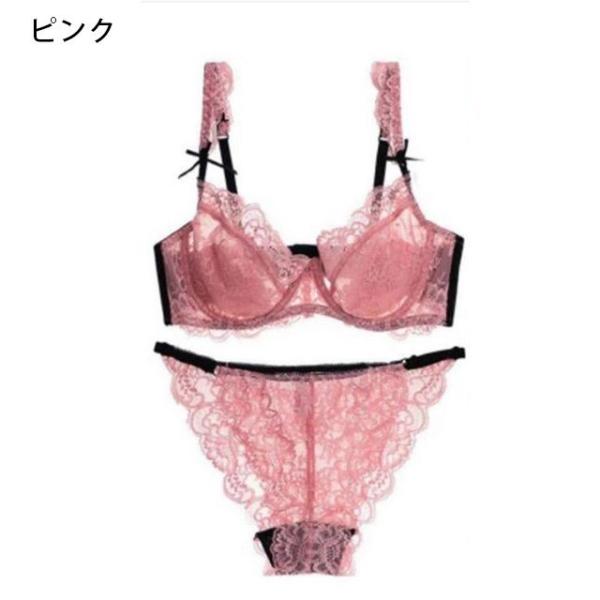 ショーツブラジャー2点セット上下セットインナーレディース3/4カップ下着総レースノンパテッド透け感セクシーバイカラ