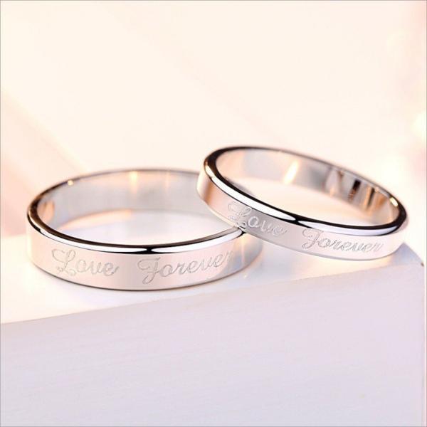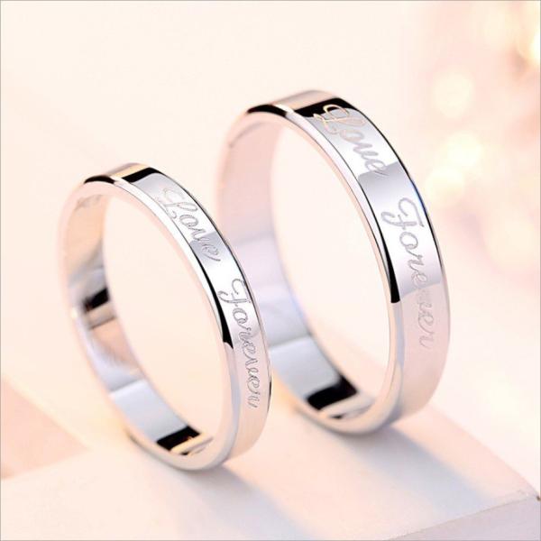 1枚セット 指輪 メンズ レディース シンプル FOREVER LOVE シルバー925 プラチナ仕上げ 男女兼用 ペアリング 人気 結婚指輪 プレゼント