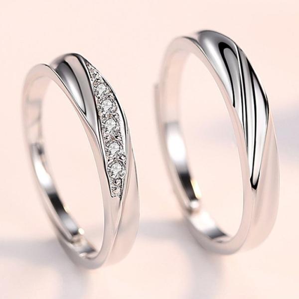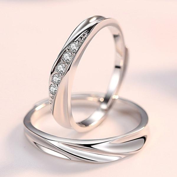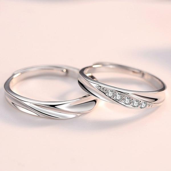 ペアリング 指輪 ダイヤ ウエーブ 波型 贅沢5粒 サイズフリー シルバー925 プラチナ仕上げ C型リング 人気 プレゼント