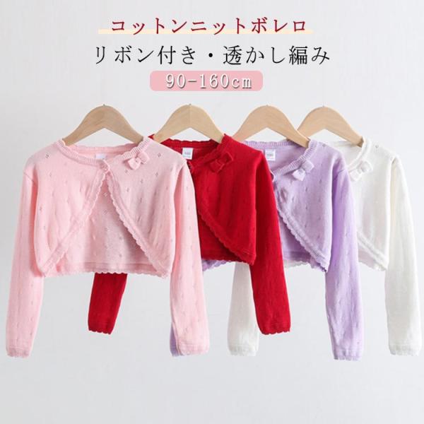 カーディガン ボレロ 女の子 卒園式 キッズ カジュアル リボン コットン キッズ 入学式 カーディガン 子供服 透かし編み 綿 発表会 結婚式 フォ