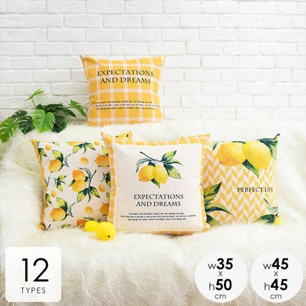 カバーのみクッションカバー45×45cm北欧レモン柄おしゃれボーダーボタニカルブラックおしゃれホワイトグレー