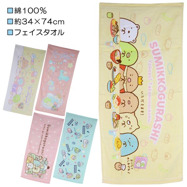 すみっコぐらし フェイスタオル タオル 5柄 綿100% 約34×74cm 入園 入学 通園 通学 【送料無料(税込1000円のお買上げが条件)】