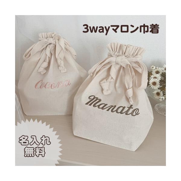 【マロン巾着】名入れ 刺繍 名前入り マロン 巾着 巾着袋 巾着 男の子 女の子 プレゼント 出産祝い お祝い 綿 散歩 バッグ ギフト 入園準備 おむつ 袋 お着替え