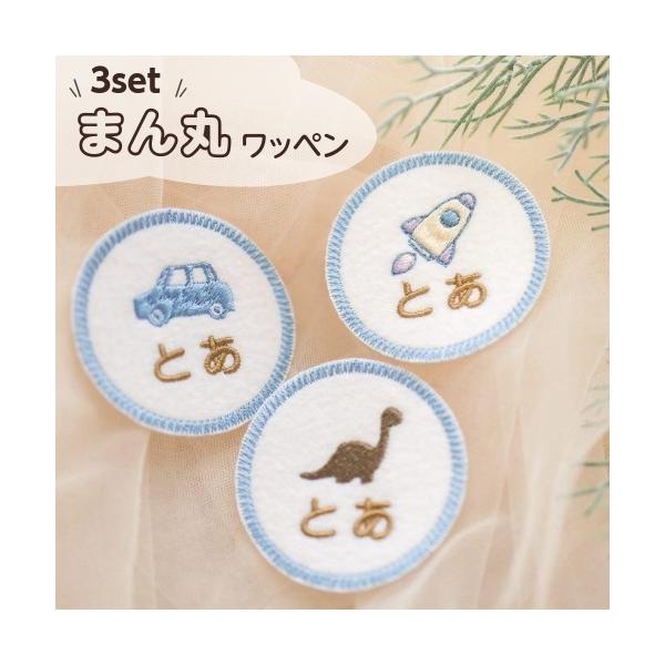 【3点セットまん丸ワッペン】 刺繍 ワッペン 名入れ 名前 シール アイロン 丸 男の子 ネームワッペン プレゼント アップリケ 幼稚園 保育園 ひらがな 漢字