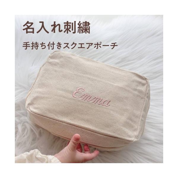【手持ち付きスクエアポーチ】名入れ ギフト 刺繍 おむつ おむつポーチ ポーチ 文房具 母子手帳 シンプル 出産祝い 母子手帳入れ オムツポーチ プレゼント