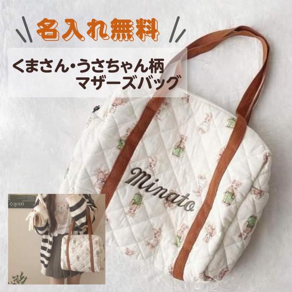 【くまさんマザーズバック】名入れ 刺繍 名前入り 出産祝い マタニティ 出産 準備 ギフト マザーズバッグ バッグ 大容量 軽量 大学 レッスン レッスンバッグ