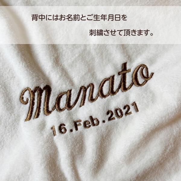 フード、背中部分に名入れ可能(※ご生年月日等ご自由に入れて頂けます)