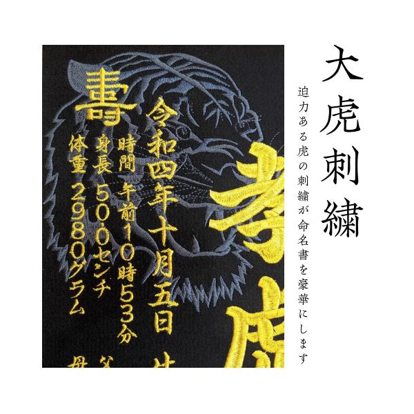 【大虎】 虎 刺繍命名額 命名書 刺繍 出産祝い お祝い こどもの日 命名額 刺繍 額 最高級版 かっこいい 干支 命名紙 お七夜 100日