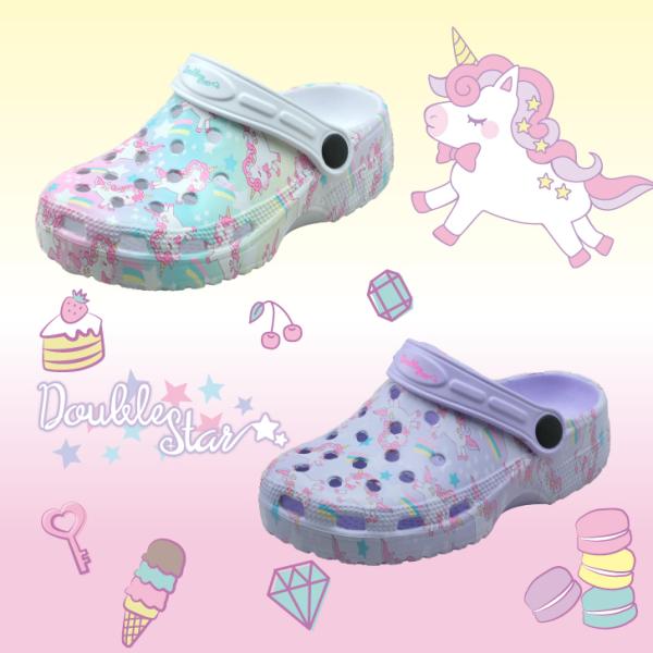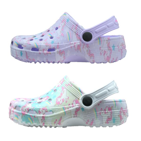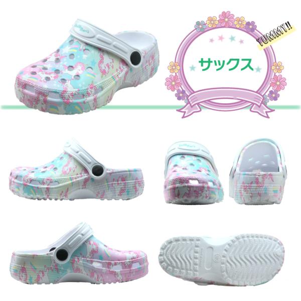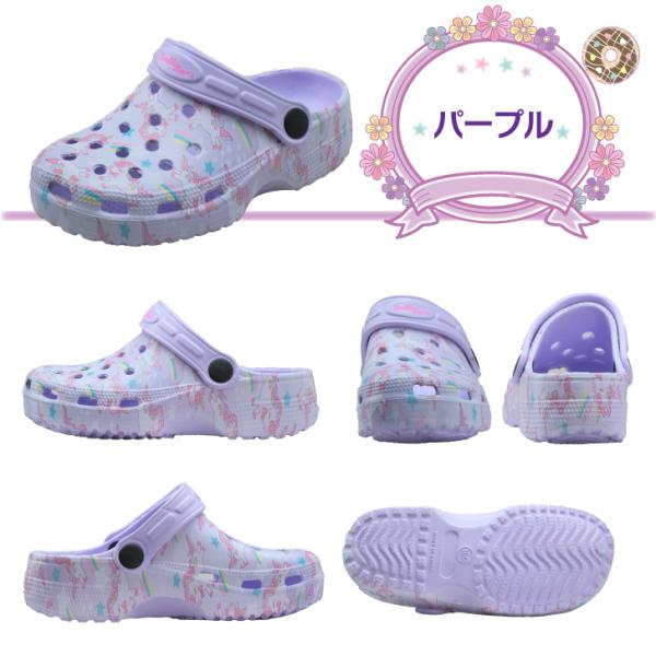 商品名:キッズ サンダル ユニコーン クロッグ 子供靴 水陸両用 女の子 キャンプ アウトドア サックス パープル ピンク キラキラ ラメ 幼稚園 保育園 16cm 17cm 18cm 爆買 爆買