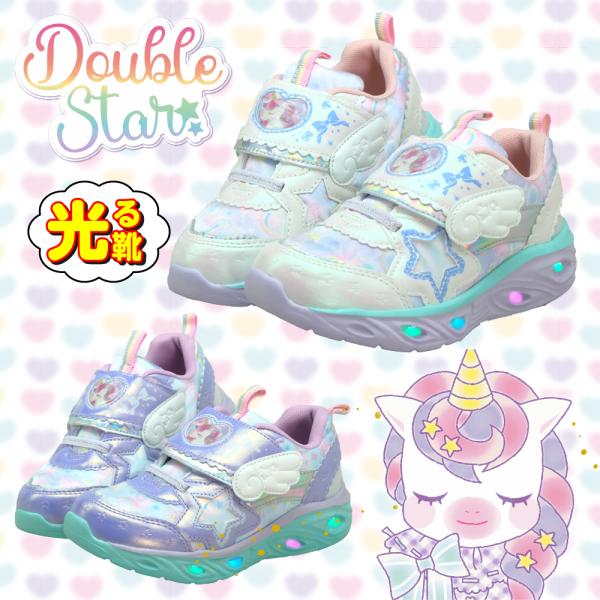 光る靴 子供靴 スニーカー 女の子 ユニコーン キッズ シューズ 15cm 16cm 17cm 18cm 19cm ゆめかわ かわいい スリッポン 幼稚園 保育園 小学生 フラッシュ 誕生日 プレゼント ピンク パープル 園児 ダブルスター センチ プリンセス 爆買