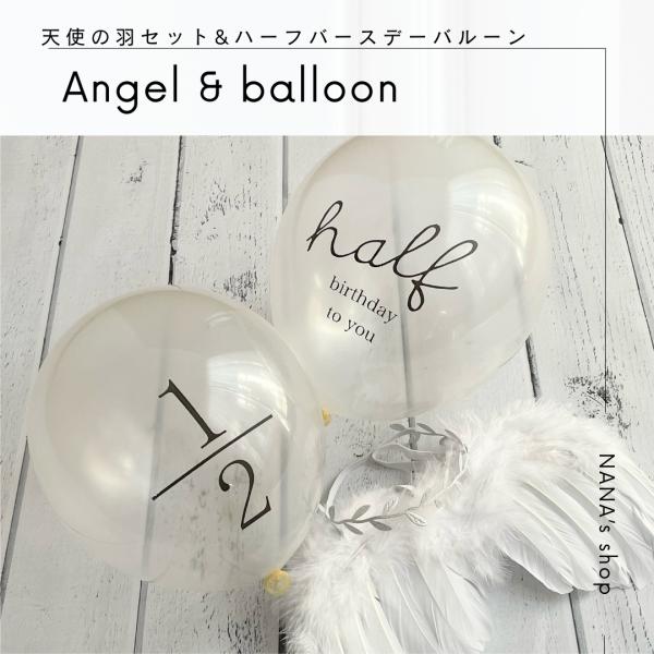 ハーフバースデー 飾り 風船 グッズ 衣装 天使の羽根&バースデーバルーン 半透明風船 half 1/2 風船