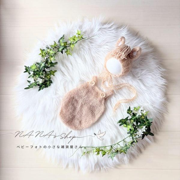 ニューボーンフォト 衣装 寝相アート うさぎ耳帽子 編み模様 オーバーオール ウサギ コスプレ