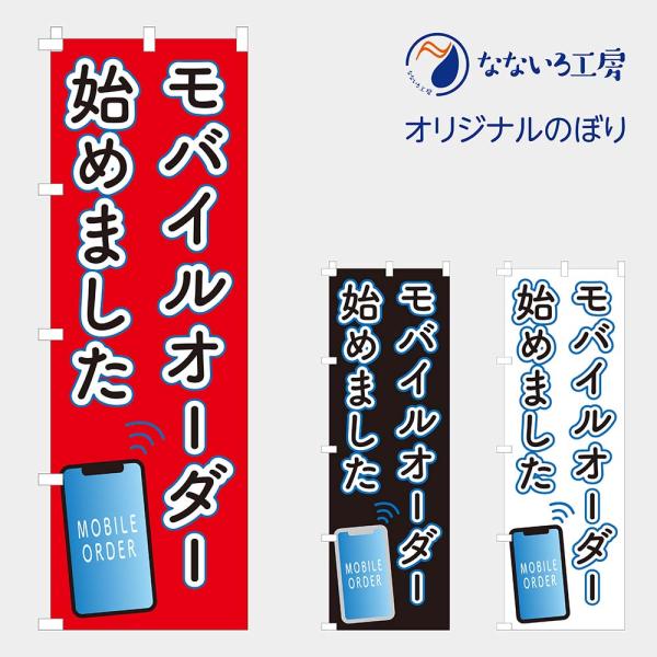 のぼり 旗 モバイルオーダー始めました 出前 テイクアウト スマホ 携帯 予約 注文 感染対策 イラスト 目立つ 600*1800