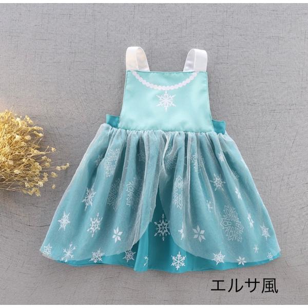 子供 エルサ ドレス アナ雪 ベル アリエル ラプンツェル エプロン ワンピース 保育園 雪の女王 コスプレ コスチューム 仮装 プリンセス キッズ