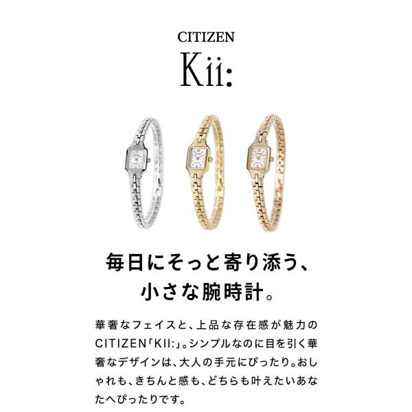 正規品 7年保証キャンペーン 送料無料 シチズン キー スクエア メタルブレス ソーラー レディース 腕時計 CITIZEN Kii アナログ 選べるモデル ◆アンティークなデザインでエコ・ドライブという機能性も併せ持つ、 シチズン Kii:(キー)。極小ムーブメントを採用することで、よりアクセサリー感の強いアンティークテイストを楽しむことができます。8角形のケースライン、クラシックなちょっと大きめのりゅうずがアクセント。カラーバリエーションが豊富なので、自分のスタイルに合わせてお選びいただけます。小ぶりで華奢なスタイルは、アクセサリー感覚で身に着けることが出来ます。 EG2043-57A EG2040-55A EG2042-50A おしゃれ 防水 軽い 華奢 かわいい クリスマスプレゼント 女性 実用的 20代 30代 40代 50代 60代 シチズンキーは小さめで軽量、上品で大人可愛いデザインが人気のシチズン腕時計!華奢な女性でも使えるギフトにもおすすめの国産ブランド時計です 名入れ 送料無料