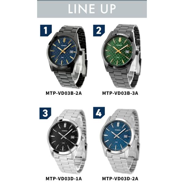 7年保証キャンペーン カシオ チープカシオ CASIO スタンダード クォーツ 電池式 海外モデル クォーツ 電池式 メンズ 腕時計 MTP-VD03D STANDARD アナログ ブラック グリーン ブルー ネイビー ホワイト 選べるモデル ◆シンプルでスタイリッシュなアナログ時計。時針、分針、秒針のベーシックなデザインが特徴です。日常生活防水仕様で、雨の日や食器洗いの時など、どんなシーンでも安心してお使いいただけます。洗練されたデザインで、オンタイムでもオフタイムでも、どんなシーンでも活躍します。誕生日や記念日のプレゼントにもおすすめです。 MTP-VD03B-2ADF MTP-VD03B-3ADF MTP-VD03D-1ADF MTP-VD03D-2A2DF MTP-VD03D-2ADF MTP-VD03D-3A1DF MTP-VD03D-7ADF MTP-VD03B-1ADF 日本未発売モデル