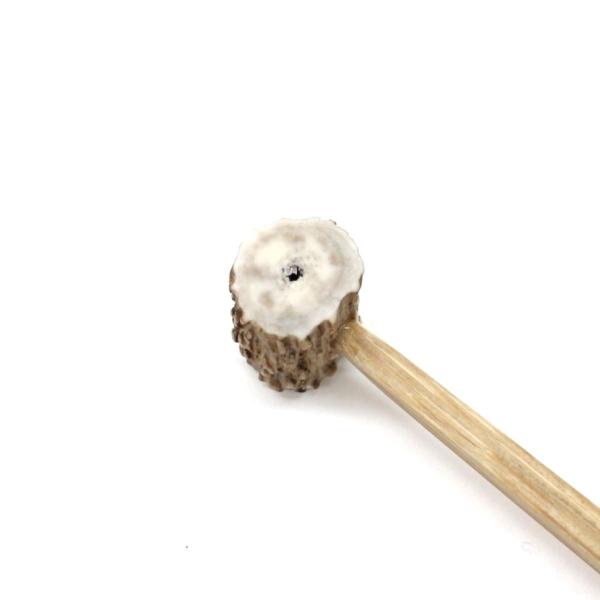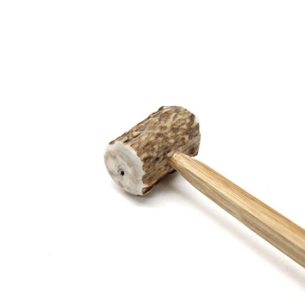 こちらの鹿ばちは柄の部分はしなるように竹を使用していて、角形となっております。