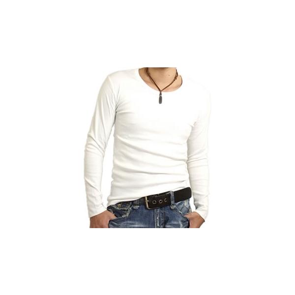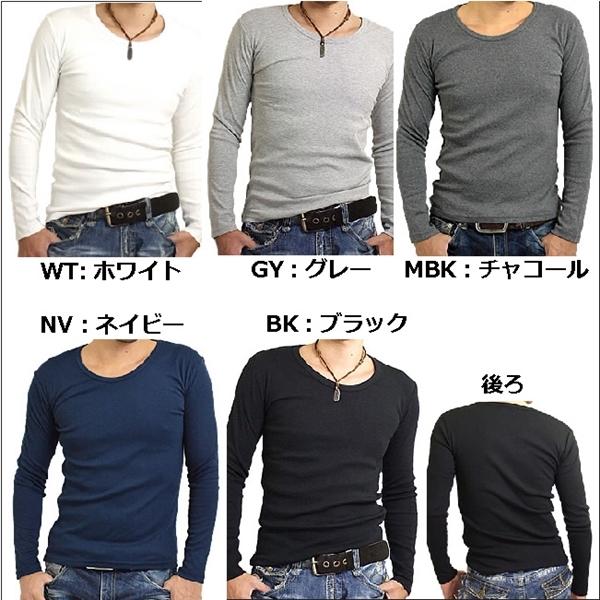 Tシャツ メンズ 長袖 Uネック Vネック 黒 白 ネイビー グレー ブラック ホワイト フライス 丸首 V首 カットソー ベーシック M L XL インナー