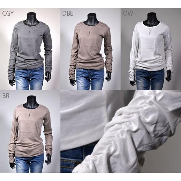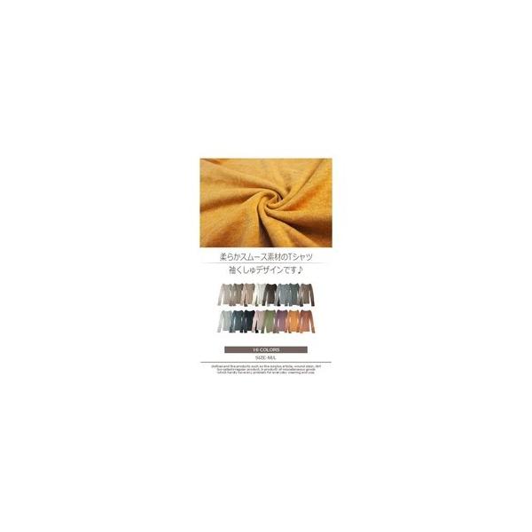 長袖 Tシャツ 袖くしゅくしゅ ロンT レディース カットソー 送料無料 無地 ボーダー 大きいサイズ M Lサイズ ポイント消化 あったか