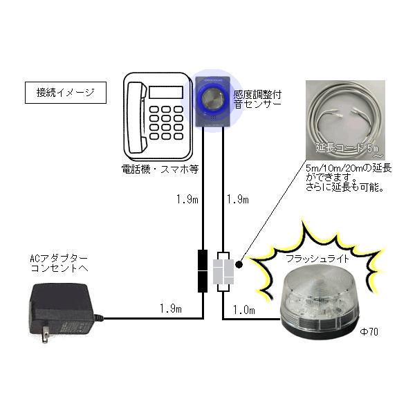 電話呼出音を音センサーで感知して、LEDフラッシュライトが点滅します。難聴者や騒音の大きな環境でも、大切な電話を逃すことなくお知らせしてくれます。一般電話だけでなく、携帯の着メロ、スマホの着信音、お家のインターホンやチャイムなど様々な場所で活躍できる便利な商品です。