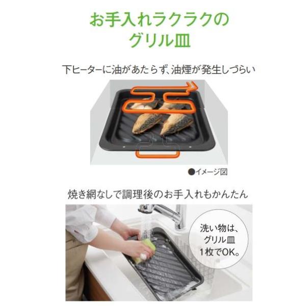 焼き網なしのグリル皿方式で、お手入れ性が向上した「新グリル」