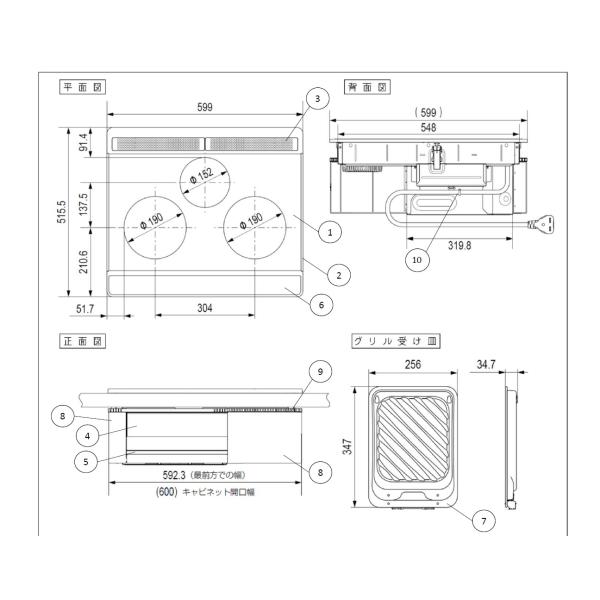 本体寸法(約)幅×奥行き×高さ 599×560×231mm(ワークトップの上高さ:13mm)