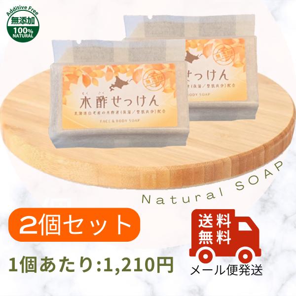 木酢せっけん 85g×2個入【送料無料】コールドプロセス 無添加石鹸 手作り石けん 北海道産の木酢液と、5種類の植物性オイル配合 大西林業
