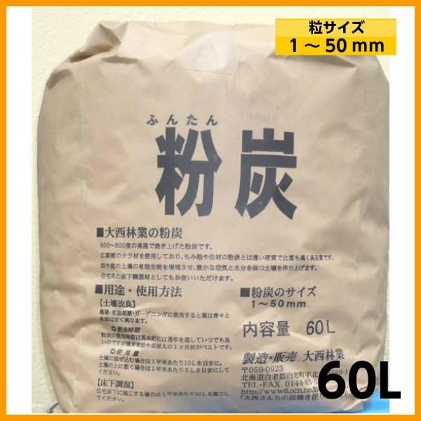 粉炭 60L(粒度1mm〜50mm) 土壌改良 床下調湿 炭埋 融雪剤として 大西林業 北海道産