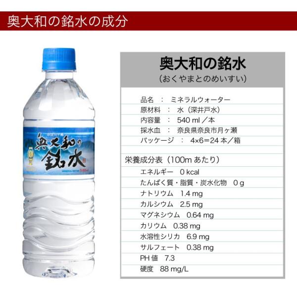 奥大和の銘水 ミネラルウォーター 540ml 24本 永伸商事 奈良県 軟水 シリカ カルシウム マグネシウム 天然