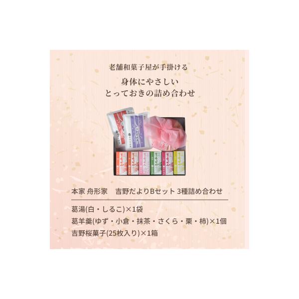 母の日 ギフト 和菓子 葛菓子3種詰め合わせ 吉野だよりB 本家舟形家 葛羊羹 葛湯 吉野桜菓子 老舗 お取り寄せ 常温 お彼岸