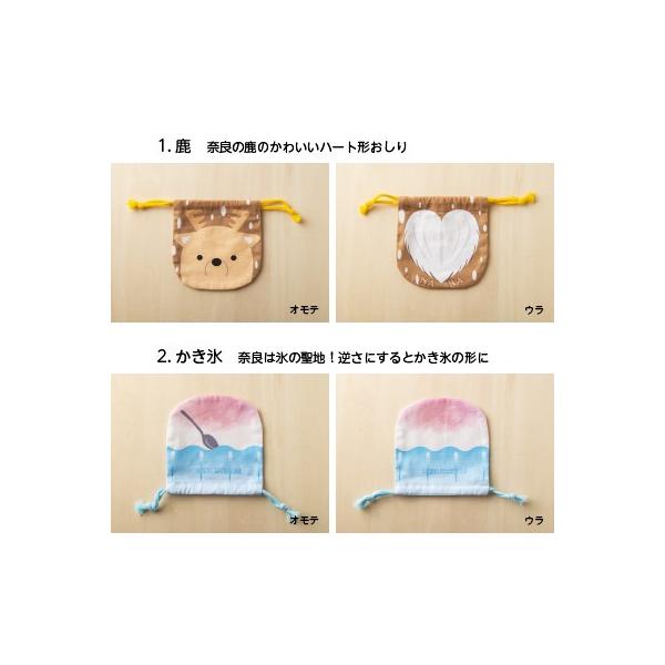 ギフト 奈良交通バス 奈良きんちゃく 選べる7種類 16cm×15cm いちご 鹿 かき氷 スイカ 金魚 おにぎり ラーメン アニマル