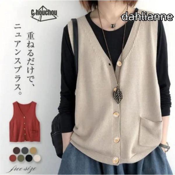 ニット ベスト レディース コーデ 春 サマー ベスト 春夏 前開き ニットベスト 春ベスト おしゃれ 着回し トップス 体型カバー ノー