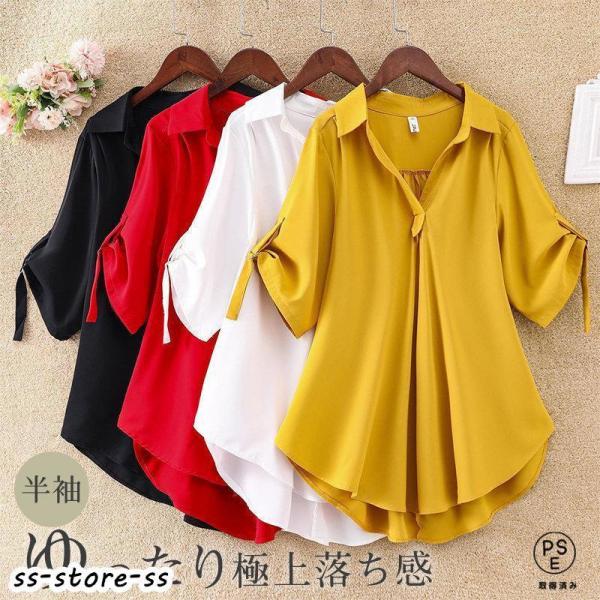 ブラウス 半袖 レディース シャツ トップス 切替 おしゃれ カットソー 重ね着 流行り 夏 Tシャツ 柔らかい チュニック ゆったり