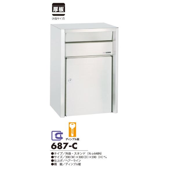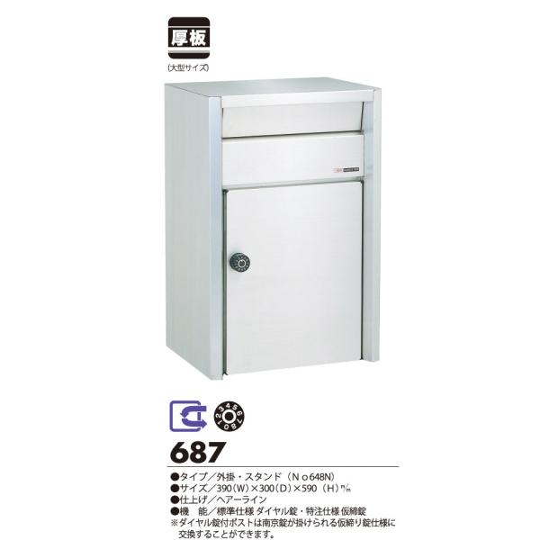 業務用大型ポスト (687ダイヤル錠 687Cディンプル錠)(ステンレス製)郵便ポスト 郵便受け 壁掛け 大型 鍵付き レターパック対応 高耐久