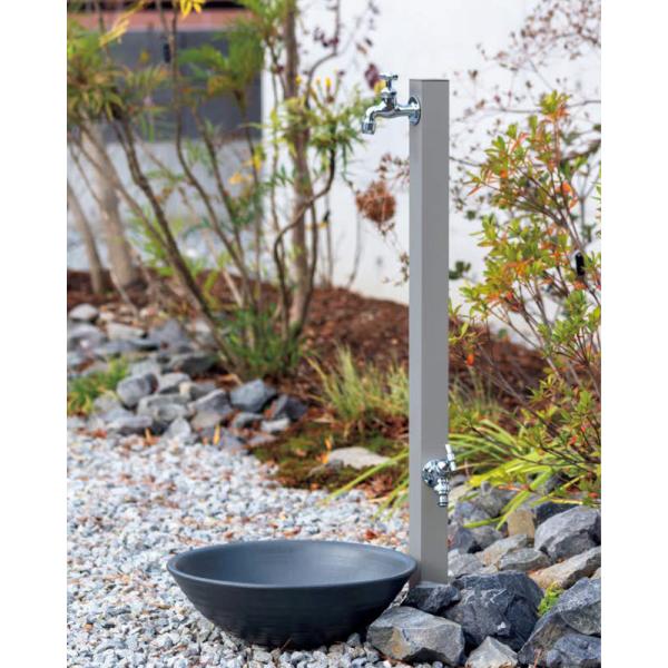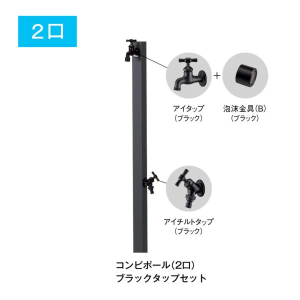 ウォータービュー コンビ ポール 2口 シルバー ブラック タップセット(パンは別途) 立水栓 水栓柱 水栓ポール ガーデンポール ガーデニング