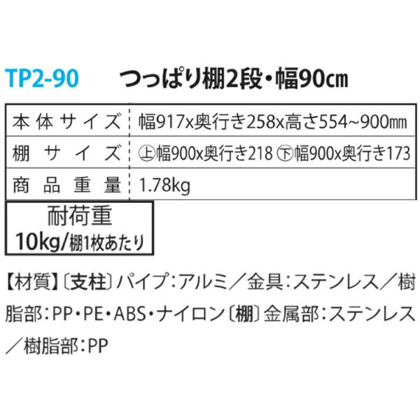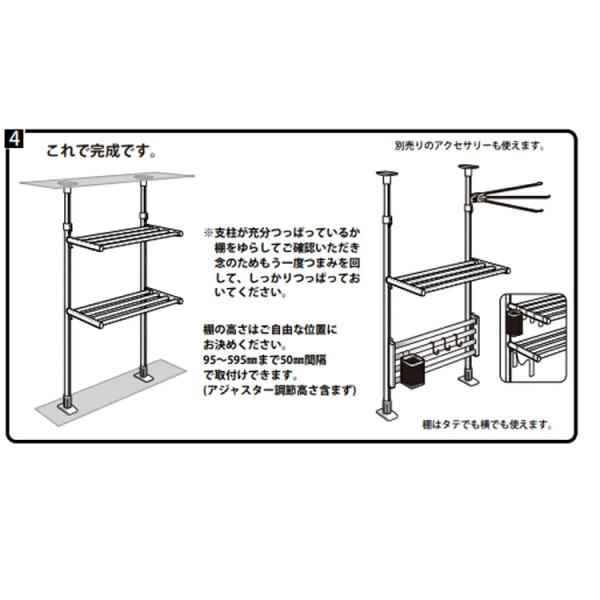つっぱり棚2段 幅60cm ワンタッチのつっぱり支柱。取付けはとても簡単です。