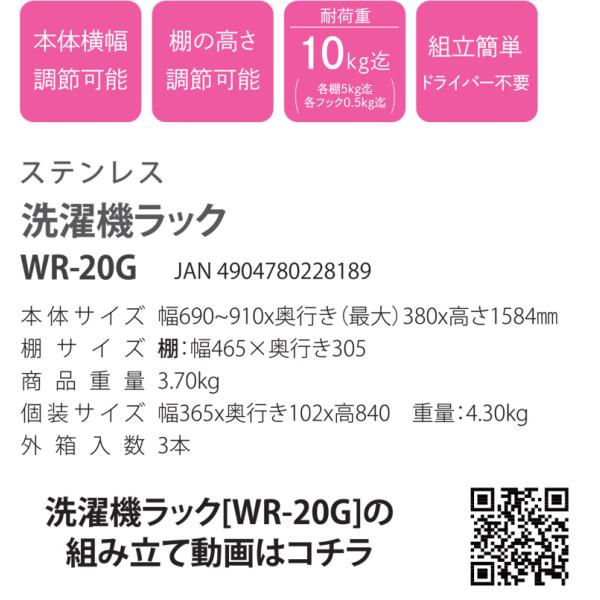 濯機ラック ステンレス WR-20G 幅690〜910×奥行(最大)380×高さ1584mm?フック2本付