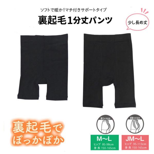 あったか裏起毛1分丈パンツ レディース ジュニア 防寒 冷え防止 マチ付き 長め くろぱん 黒 オーバーパンツ