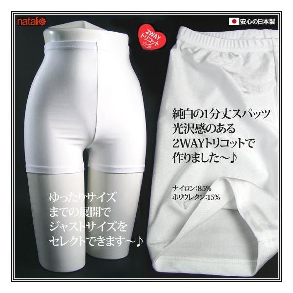 日本製 スパッツ 純白 真っ白 光沢 1分丈 ショート丈 ショーパン 2WAYトリコット レディース ジュニア 女子 男子 スクール 制服 部活 クラブ レギンス ボトムス 吸汗速乾 薄手 スポーツウェア ヨガウエア フィットネス エアロビクス ズンバ ジャズダンス 舞踊 社交ダンス ピラティス エクササイズ ランニングウェア 新体操 バレエ サッカー バスケ アンダーパンツ ストレッチ ウエストゴム ハイウエスト 股上深め 祭り 衣装 白衣 インナーパンツ スカート下 透け防止 チラ見え防止 ショートパンツ 下履き 重ね履き ホワイト 安全安心 国産 メール便可3