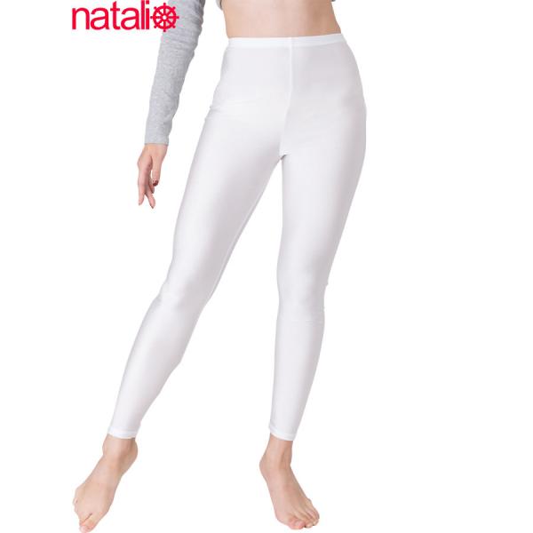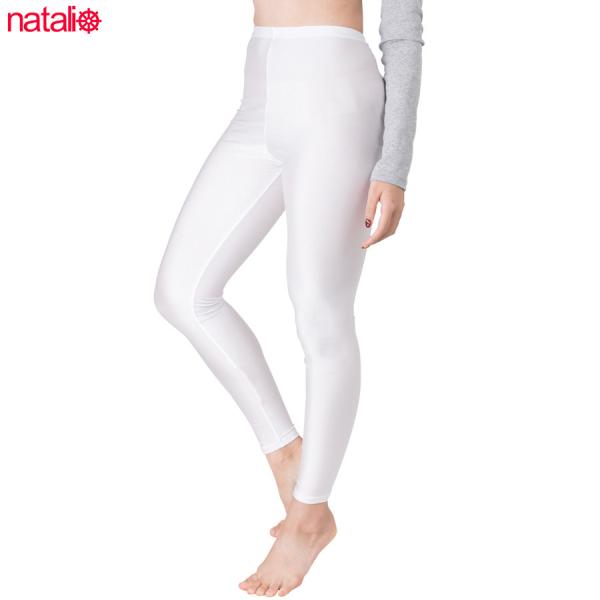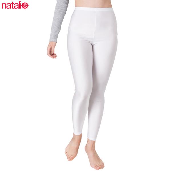 日本製 白 レギンス 2WAYトリコット 光沢 レディース スパッツ 吸汗速乾 ストレッチ フルレングス インナーパンツ ボトムス 14分丈 (ML/JML)
