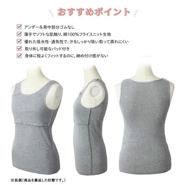 綿100%ブラトップ タンクトップ カップ付インナー 締め付けない 背中&アンダーゴムなし 敏感肌 取り外し可能パッド付 ブラタンク (M〜LL)
