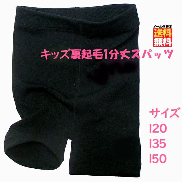 裏起毛 キッズ スパッツ 1分丈 ■ ジュニア レギンス 黒 あたたかい ふんわり やわらか 秋 冬 女の子 暖か 防寒 無地黒 【メール便限定送料無料】