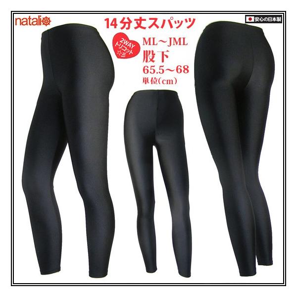 日本製 黒 レギンス 2WAYトリコット 光沢 レディース スパッツ 吸汗速乾 ストレッチ フルレングス インナーパンツ ボトムス 14分丈 (ML/JML)